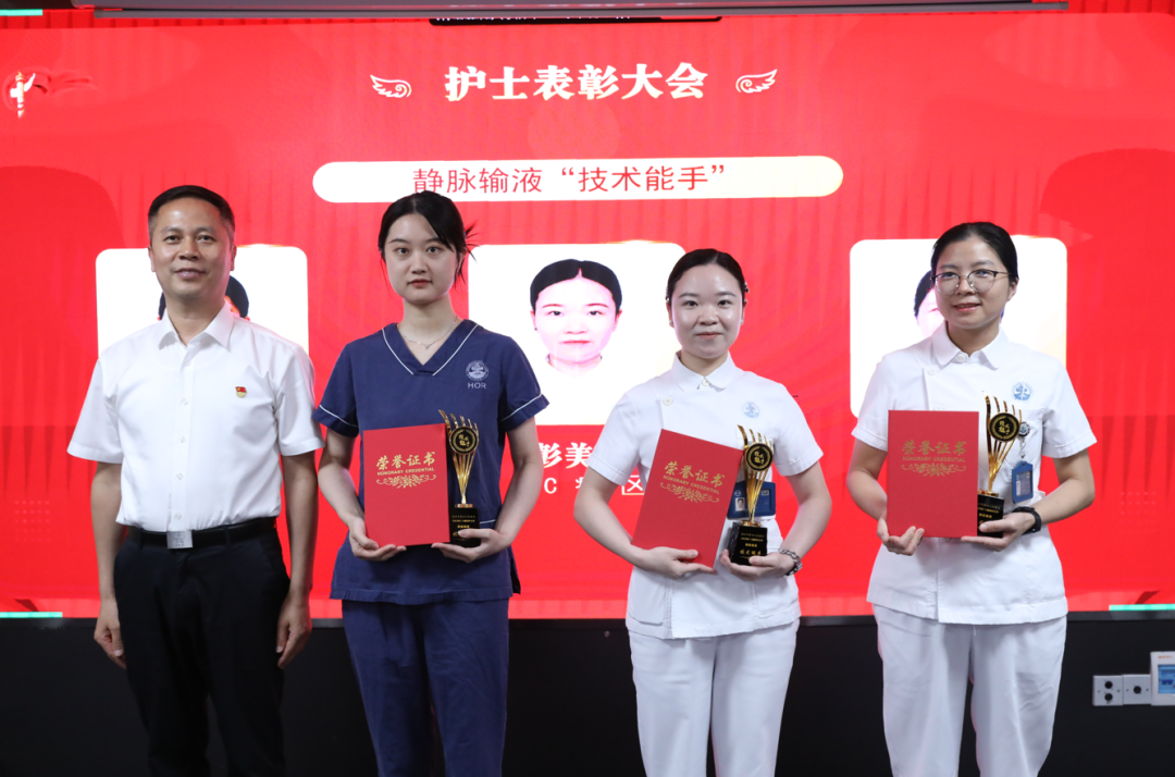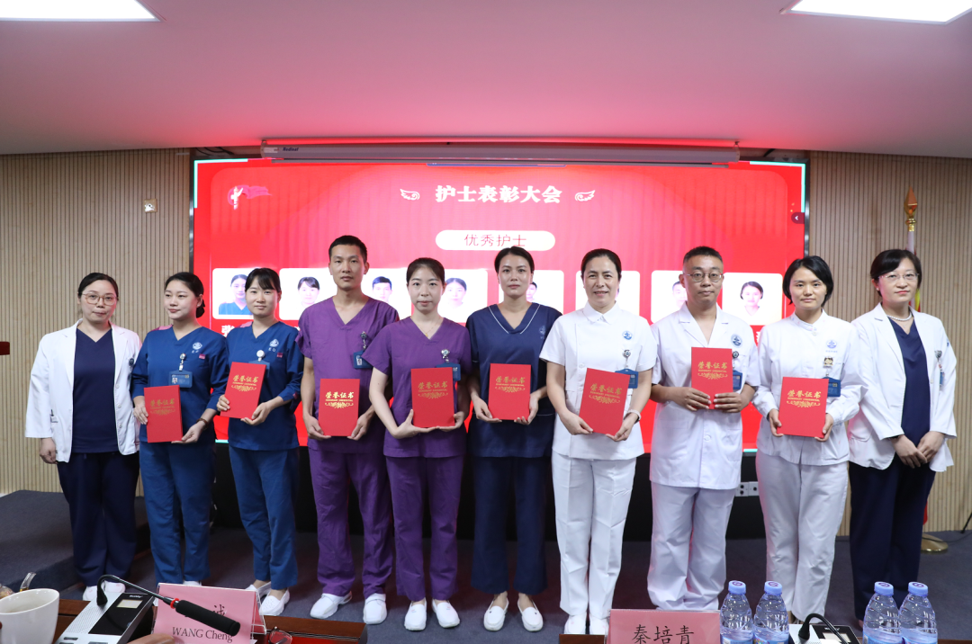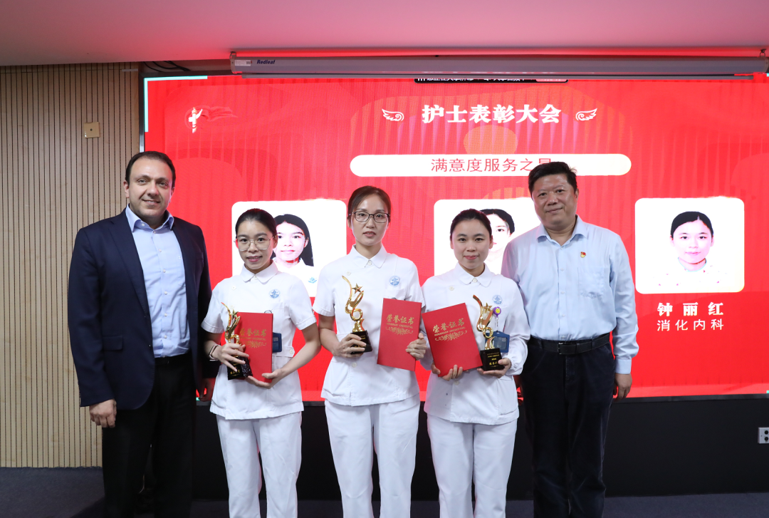 WAN Lidan, WANG Jing, SUN Lixin, and BAO Xiaomin presented the award to the Outstanding Nurses.
