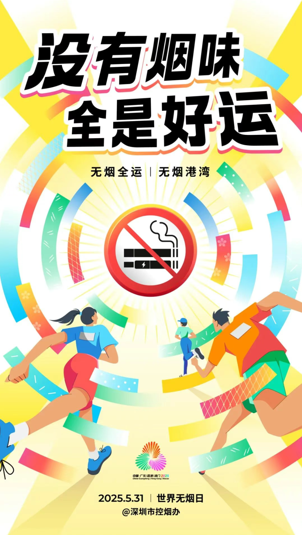 2025年5月31日是第38个“世界无烟日”,今年深圳市的主题为“没有烟味,全是好运”。