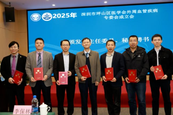 为促进坪山区外周血管疾病诊疗规范化发展,加强学术交流与专业人才培养,推动血管外科及介入医学技术创新与临床实践应用,深圳市第四人民医院(深圳市萨米医疗中心)积极牵头,联合深圳平乐骨伤科医院(深圳市坪山区中医院)、南方医科大学附属坪山医院(坪山区人民医院)、深圳市坪山区妇幼保健院、深圳市坪山区中心医院等四家兄弟医院,共同发起并成功申请成立了坪山区医学会外周血管疾病专委会。